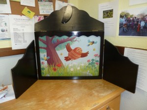Dès 15 h 30 les enfants (mais ce n’est pas interdit aux adultes) pourront écouter plusieurs histoires qui seront racontées par Cathy la bibliothécaire, avec le Kamishibaï géant. Ce théâtre d’image est prêté à la médiathèque de Valdoule par la BDP de Gap (Bibliothèque départementale de prêt) encore pour quelques jours.