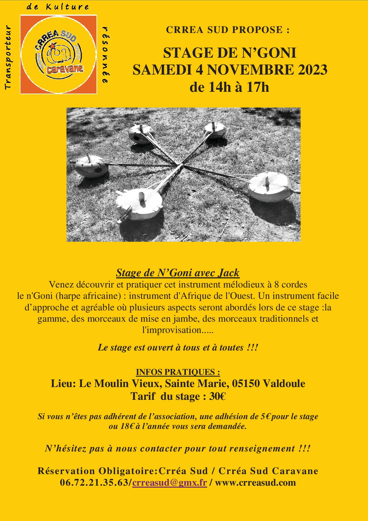 Non classéStage de N’Goni à Valdoule 24 octobre 2023 corinne05 le 04 Novembre 2023 de 14 H à 17 H à Moulin Vieux – Sainte Marie 05150 VALDOULE (précisions sur affiche ci dessous) stage-goni-nov-2023-crrea-sud Partager : Cliquez pour partager sur Facebook(ouvre dans une nouvelle fenêtre) Facebook Cliquer pour partager sur X(ouvre dans une nouvelle fenêtre) X Cliquer pour imprimer(ouvre dans une nouvelle fenêtre) Imprimer Cliquer pour envoyer un lien par e-mail à un ami(ouvre dans une nouvelle fenêtre) E-mail Sur le même thème Publié par corinne05 Voir tous les articles par corinne05