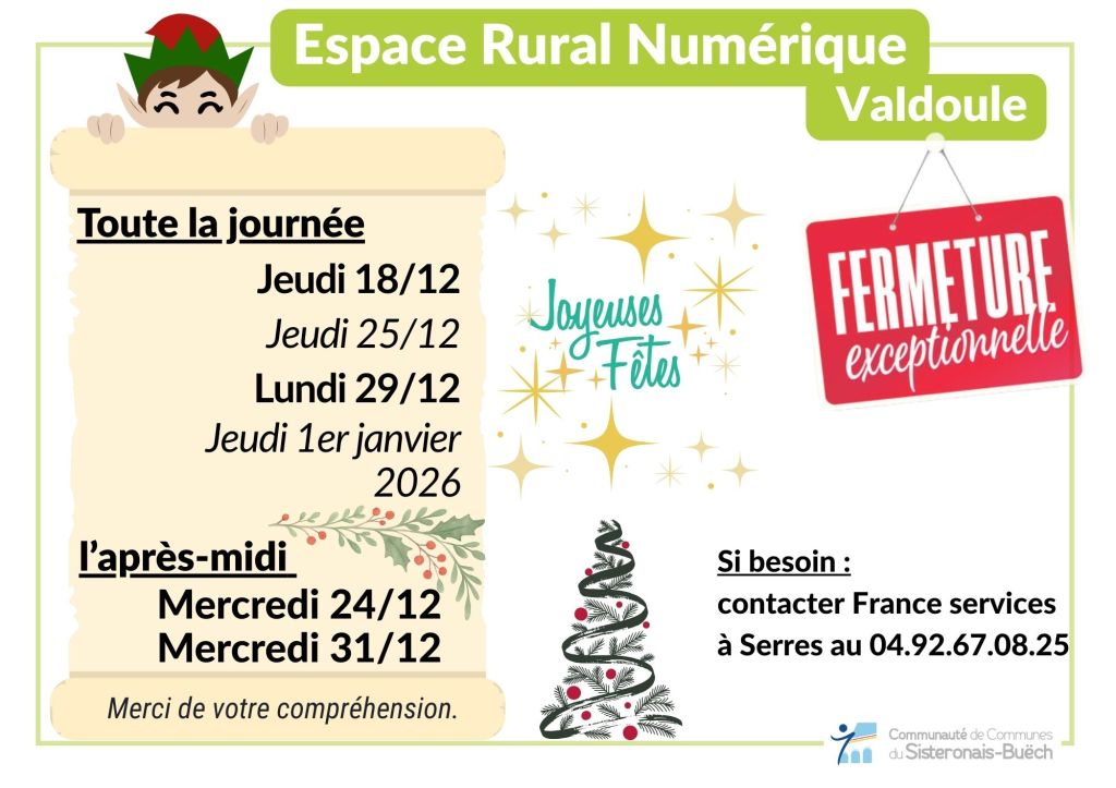 L’Espace rural numérique de Montmorin VALDOULE sera fermé toute la journée