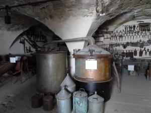 Pour ceux qui n’ont pas encore franchi le seuil de la lourde porte où quelques lettres gravées annoncent « l’Ecurie Casado » il est toujours temps de visiter cet antre où sont exposés toutes sortes d’outils anciens restaurés avec beaucoup de soin et harmonieusement disposés sou la voûte séculaire. Véritable caverne d’Ali Baba, cette salle d’exposition est en effet ouverte au public toute l’année, car si François n’est pas là (c’est-à-dire parti à la recherche de perles rares qui manquent à sa collection), un voisin ou la bibliothécaire qui est juste en contrebas, se feront un plaisir de guider le visiteur de l’alambic à la presser à huile de noix en passant par la forge, l’ herminette,… tous ces objets chargés de passé, patinés et même personnalisés par les mains qui les ont utilisés jusqu’à l’usure…